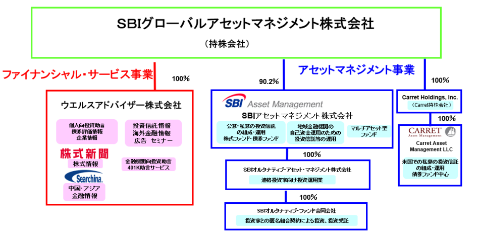 ウエルスアドバイザーは、SBIグローバルアセットマネジメント株式会社(証券コード:4765)の完全子会社です。