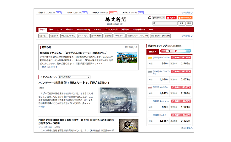 2018年5月に株式新聞Webを刷新、モバイルやタブレット端末向けアプリの展開も開始しました。
