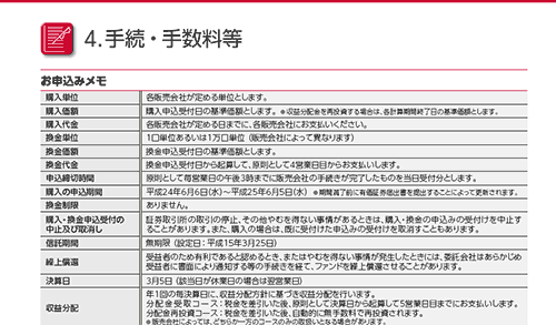 さて、「投資信託説明書」のなかを見てみましょう。どの投資信託の「投資信託説明書」も、巻頭に投資信託の概要がわかりやすく記載され、詳細情報がその後に続く形になっています。