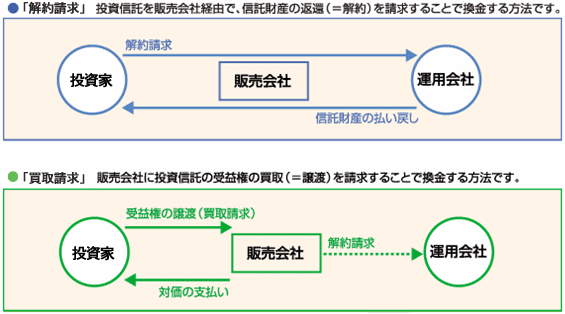 株式投資信託を売る場合、「解約請求」と「買取請求」の2種類の手続きがあります。